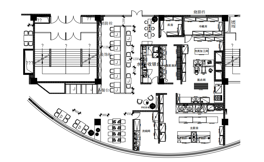 使用的灶具少,灶具主要是用大鍋灶煮麵、熬粥,隻需一兩眼炒灶用來製作主食配料,或用來煮零點的麵條、餃子;使用的機械設備多,如和麵機、壓麵機、包子機、菜焰機、攪拌機等;蒸、煮、烤、炸、煎設備用得多,蒸飯櫃、夾層鍋、烤箱、電炸 鍋、電餅鐺等;主食加工間與副食加工間特點不同,主食的米飯、饅頭、包子、餃子等食品大多是批量製作,批量蒸煮生產。所以,除煎炸食品外,生製與熟製可以分開區域設置。熟製區需要出餐台,生製區需要機械設備、工作台、及原料運送,傳餐通道要有一定的寬度,通道要設置合理。由於經營方式、餐品類別、加工工藝、出餐產量大小差異較大,主食加工間布局與飯店叼嘿软件下载大全設計自有特點。