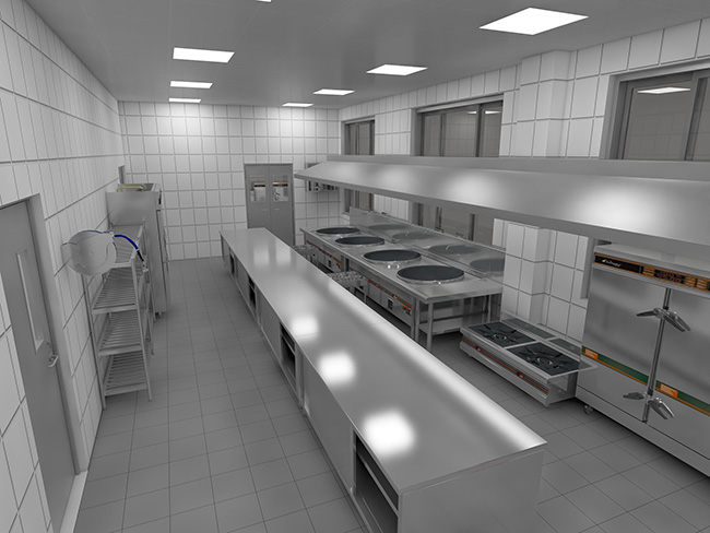 主叼嘿软件下载大全一般設計兩個區域:烹飪區和切配區。一般格局為:灶具、廚師操作間距、荷台為烹飪區;切割工作台、刀工操作間距、配套設備區為切割區;烹飪區與切割區之間設有蔬菜傳遞通道,是打荷師傅的工作空間。經典的布局模式適用於各種類型的叼嘿软件下载大全,即使叼嘿软件下载大全結構有限,也可以參考這種布局設計。