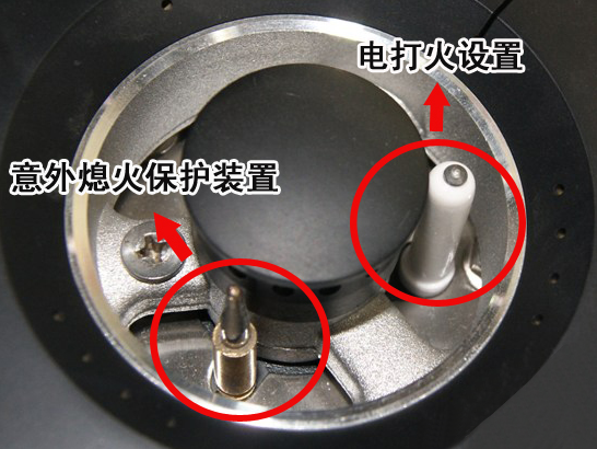 b、當燃具火焰熄滅,導致熱電偶產生的電流下降,使電磁閥的鐵芯和銜鐵鬆脫,自動切斷燃氣通路,防止燃氣外泄。
